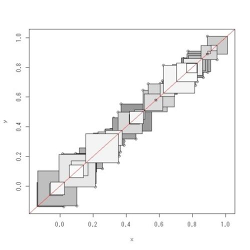2つの「もの」がn次元ベクトルで表現されているとする それぞれをとする 空間の点と考えてユークリッド距離を計算すれば、 これは、n次元空間を描き、そこに2点を配置して、2点間の直線を引くことで図示ことができる 別の図示の方法としては、x軸とy軸と…