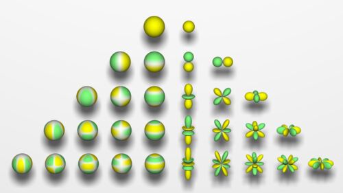 この絵(球面調和関数)を定性的に説明したい 中央に並んだ絵は、球面上の色模様にしろ、くびれ的描図にしろ、z軸に関して回転対象 黄色を正、緑を負とすれば、「正」「正負」「正負正」「正負正負」「正負正負正」となっている これは、z軸座標([-1,1])につい…
