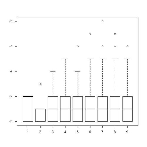 こんな記事がありました。「席替えの数理」 # クラスの人数 ns <- 2^(1:10) # 席替え試行数 n.iter <- 10^4 # 席が変わらなかった人数の格納用行列 no.changers.mat <- matrix(0,length(ns),n.iter) for(j in 1:length(ns)){ n <- ns[j] ori <- 1:n no.chang…