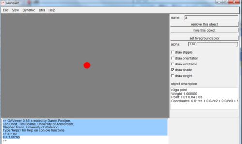 チュートリアル ダウンロードはこちらから まず起動。 言われるがままに、コマンドを打つ >> GAViewer 0.85, created by Daniel Fontijne, Leo Dorst, Tim Bouma, University of Amsterdam; Stephen Mann, University of Waterloo. Type 'help()' for help o…